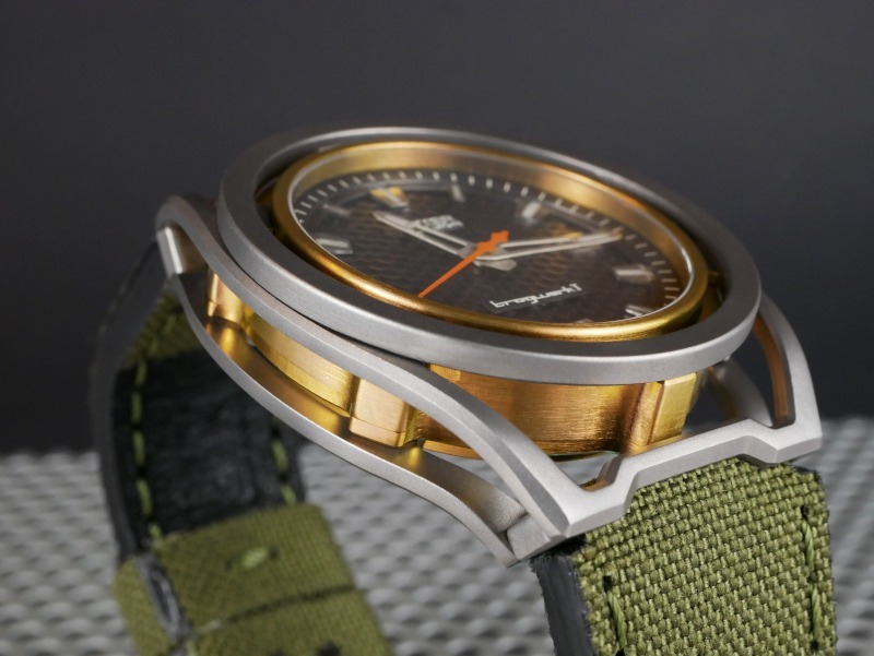 Traditionally, we see two primary avenues for sport as a commercial genre, Aviation and Diving. Matthias has a more unique approach that he’s produced a watertight watch, which is not a diver, yet really a “Sport Utility Watch”. Although, I am not really trying to define it. The “Tragwerk.T” is the result of a lot of long hours of prototyping. Matthias really wanted to bring color to the world of high-end watches. The primary issue of colors is that colors are yielded by coatings and all coatings are susceptible to scratching. The solution, comes from the natural world. Matthias Kieser sees the Dragonfly as a the ideal to emulate. The dragonfly has a body that consists of an extremely lightweight exoskeleton. The wings are also ultra-light, because they are made of a sophisticated network of struts. Tragwerk.T combines these ideas from the natural world into high tech modern manufacture. A hard anodized (with colors) titanium inner case is matched to an ultralight titanium exoskeleton, which neatly protects the colored surfaces!