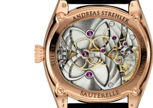 It is the basis for precision.To achieve this aim and to get at the same time a solid basis for future complications, Andreas Strehler was looking for a solution to completely uncouple the escapement from the gear train. To do this would ensure that the escapement is not influenced by what is happening upstream, i.e. in the gear train. The intended device should be of compact dimensions, guarantee a permanent (i.e. long-lasting) constant amplitude. Further, the solution to be found should be a universal one; this means it ideally should work independently of the frequency of the escapement. This would enable Andreas Strehler to use the device on any future movement he would be designing. Andreas Strehler has placed his remontoir d’égalité on the (jumping) seconds wheel. Every second, the visible satellite gear supplies the escapement wheel with exactly the same amount of energy. At the same time, the deadbeat or jumping seconds (Sauterelle means “Grasshopper”=seconds jumping) are indicated.