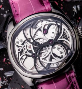 The first watch, pre- Andreas Strehler watches, was the Harry Winston Opus 7. Opus 7 had a very strong theme of bridges in the skeleton form of a butterfly (a Papillon). The Papillon theme becomes an organic structure for Andreas’ first watch of his own eponymous marque.
